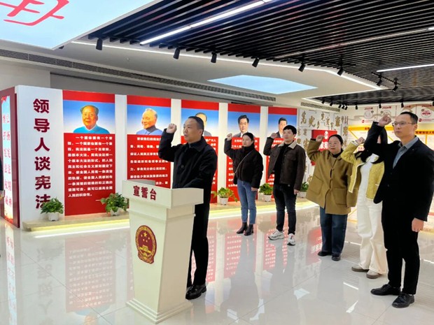 为深入学习贯彻宪法精神,强化干部法治素养与责任担当,12月5日,法治办组织2025年新任命干部,联合第四十三党支部等多个党支部党员代表,赴芜湖宪法馆开展宪法宣誓暨沉浸式学习活动,以庄重仪式凝聚初心力量,以深度研学筑牢法治根基。