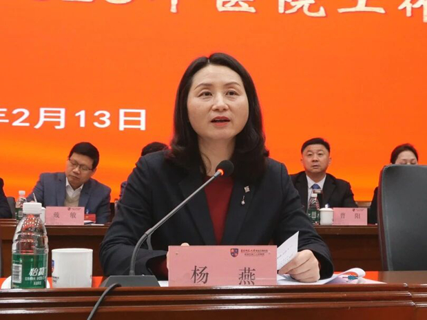 杨燕在讲话中高度评价医院2025年为全市“十四五”卫生健康事业圆满收官作出的贡献。她指出,医院作为市级医疗体系“排头兵”,一要强化党建工作政治引领;二要在深化系统改革上作示范;三要在提升核心能力上攀高峰;四要在优化服务供给上树标杆;五要在凝聚发展合力上筑根基。
