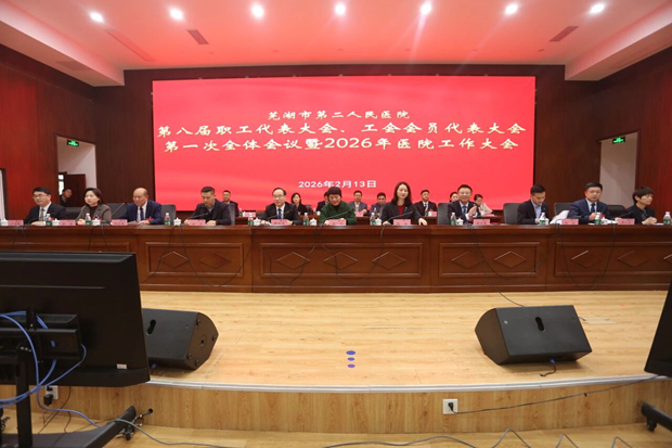 2月13日,我院第八届职工代表大会、工会会员代表大会第一次全体会议暨2026年度医院工作大会在9号楼会议中心召开。